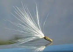 Cypselae on a dandelion "clock" (the matured capitulum) can disperse in the wind due to the hair-like calyx tissue above each ovary. -