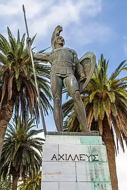 The tomb of Achilles,[66] extant throughout antiquity in the Troad,[67] was venerated by Thessalians, but also by Persian expeditionary forces, as well as by Alexander the Great and the Roman emperor Caracalla.[68] Achilles's cult was also to be found at other places, e. g. on the island of Astypalaea in the Sporades,[69] in Sparta which had a sanctuary,[70] in Elis and in Achilles's homeland Thessaly, as well as in the Magna Graecia cities of Tarentum, Locri and Croton,[71] accounting for an almost Panhellenic cult to the hero.
