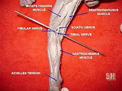9. ^ Blackmon JA, Atsas S, Clarkson MJ, Fox JN, Daney BT, Dodson SC, Lambert HW (2013). "Locating the sural nerve during calcaneal (Achilles) tendon repair with confidence: a cadaveric study with clinical applications". The Journal of Foot and Ankle Surgery. 52 (1): 42–7. doi:10.1053/j.jfas.2012.09.010. PMC 7232653. PMID 23099184.