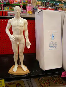 Acupuncture[b] is a form of alternative medicine[2] and a component of traditional Chinese medicine (TCM) in which thin needles are inserted into the body.[3] Acupuncture is a pseudoscience;[4][5] the theories and practices of TCM are not based on scientific knowledge,[6] and it has been characterized as quackery.[c]