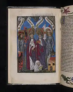 The main effort of Bolesław the Brave, however, was the pursuit of the canonization of St. Adalbert, undertaken immediately after the ransom of his body and its transfer to Poland. A key role in this was played by Radim Gaudentius, the martyr's brother and a witness to his death, who was sent to Rome, where, together with John Canaparius, he wrote the Vita sancti Adalberti (known as the Vita prior).[29] Adalbert was most likely declared a saint on June 29, 999, in Rome.[30] Another famous biographer of Adalbert was Bruno of Querfurt who wrote a hagiography of him in two versions, the first written in 1004, the second in 1008 (known as the Vita altera). Around 1025, the third hagiography of the saint was created, known as the Passion from Tegernsee, from the Bavarian Benedictine abbey where the memory of Saint Adalbert was venerated.[31]