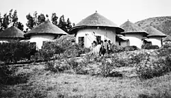 Early residential dwelling was typically made of circular huts; walls were constructed with mud (Amharic: ጭቃ, cheka) and straw plastered on a wooden frame and thatched roofs. Addis Ababa's growth rate began with early rapid urbanization without preplanned intention. This was the time where nobilities embarked on concentrated permanent settlement, and altered by social patterns; i.e. each neighborhoods (sefer) was located on higher grounds, noncontiguous from adjacent settlements. The early social milieu contributed the contemporary admixture of a classic neighborhood. One of Emperor Menelik's contributions that are still visible today is the planting of numerous eucalyptus trees along the city streets.[27][12]