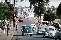 The founding history of Addis Ababa dates back to the late 19th century by Menelik II, Negus of Shewa, in 1886 after finding Mount Entoto unpleasant two years prior.[12] At the time, the city was a resort town; its large mineral spring abundance attracted nobilities of the empire and led them to establish permanent settlement. It also attracted many members of the working classes – including artisans and merchants – and foreign visitors. Menelik II then formed his imperial palace in 1887.[13][14] Addis Ababa became the empire's capital in 1889, and subsequently international embassies were opened.[15][16] Urban development began with the 20th century, without any prior planning.[12]