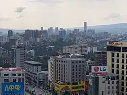 United Nations Population Projections estimated the population of metro area of Addis Ababa to be 5,228,000 in 2022, a 4.43% increase from 2021.[46] During Abiy Ahmed's premiership, Addis Ababa and its vicinities underwent Beautifying Sheger. This project is aimed to enhance the green coverage and beauty of the city. In 2018, Abiy initiated a project called "Riverside" planned to expand riverbanks for 56 kilometres (35 mi), from the Entoto Mountains to the Akaki River.[47][48][49][50][51] In October 2022, the government launched Sheger City, an urban development model that contains 12 sub-cities, 36 districts and 40 rural kebeles with its seat located in Saris area in Addis Ababa.[52][53] The project objective was to feed other satellite cities into Addis Ababa and contribute economic development within enclave. Several human rights groups as well as politicians criticized the process to build Sheger City due to inciting mass house demotions that belonged to non-Oromo ethnic group, regional disparity by violating the constitutional rights of Oromo people.[54]