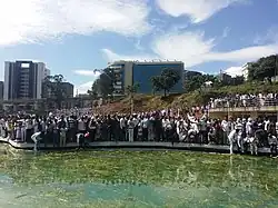 A controversial plan to expand the boundaries of Addis Ababa, by 1.1 million hectares into the Oromia special zone in April 2014,[37][38] sparked the Oromo protests on 25 April 2014 against expansion of the boundaries of Addis Ababa. The government responded by shooting at and beating peaceful protesters.[39] This escalated to full blown strikes and street protests on 12 November 2015 by university students in Ginchi town, located 80 km southwest of Addis Ababa city, encircled by Oromia Region.[40][41][42] The controversial master plan was cancelled on 12 January 2016. By that time, 140 protesters were killed.[43][44][45]