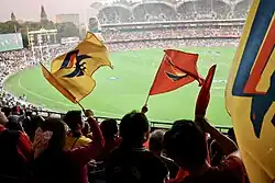 The Adelaide Football Club, nicknamed the Crows, is a professional Australian rules football club based in Adelaide, South Australia that was founded in 1990. The Crows have fielded a men's team in the Australian Football League (AFL) since 1991, and a women's team in the AFL Women's (AFLW) competition since 2017.[3] The club's offices and training facilities are located in the western Adelaide suburb of West Lakes, at the site of the club's former home ground Football Park. Since 2014 Adelaide have played home matches at the Adelaide Oval, a 53,500-seat stadium located on the northern bank on the River Torrens in North Adelaide.[4]