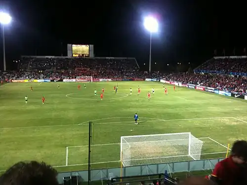 Adelaide competed in the ACL Champions League in 2010 after finishing second on the 2008–09 A-League league table, and runner-up in the Finals series to cross-border rivals, Melbourne Victory.[22] Adelaide were drawn into Group H alongside 2009 Asian Champions Pohang Steelers, Chinese sister club Shandong Luneng and Sanfrecce Hiroshima. Adelaide United managed to hold on to the top spot of Group H, resulting in a home match in Round 16. In an exciting, nerve-racking match, Adelaide lost to Jeonbuk Motors 3–2. Adelaide came back twice in the game, including a goal in the final seconds of the match. Jeonbuk won the match with a goal in the second half of extra time.[23]