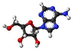 Adenosine (symbol A) is an organic compound that occurs widely in nature in the form of diverse derivatives. The molecule consists of an adenine attached to a ribose via a β-N9-glycosidic bond. Adenosine is one of the four nucleoside building blocks of RNA (and its derivative deoxyadenosine is a building block of DNA), which are essential for all life on Earth. Its derivatives include the energy carriers adenosine mono-, di-, and triphosphate, also known as AMP/ADP/ATP. Cyclic adenosine monophosphate (cAMP) is pervasive in signal transduction. Adenosine is used as an intravenous medication for some cardiac arrhythmias.