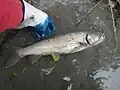 The Adige is a home to the marble trout (Salmo marmoratus), but at far lower populations than in the past. Fish stocking is one of the most significant causes of the sharp reduction in the original (indigenous) fish population of this subspecies. It will spawn with and interbreed with brown trout, which are regularly stocked in the river and its tributaries.[5]