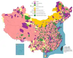 This table summarizes the divisions of the area administered by the People's Republic of China as of June 2017.