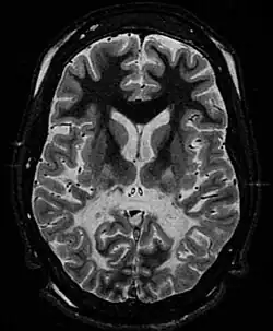 The Loes score is a rating of the severity of abnormalities in the brain found on MRI. It ranges from 0 to 34, based on a point system derived from the location and extent of disease and the presence of atrophy in the brain, either localized to specific points or generally throughout the brain. A Loes score of 0.5 or less is classified as normal, while a Loes score of 14 or greater is considered severe. It was developed by neuroradiologist Daniel J. Loes MD and is an important tool in assessing disease progression and the effectiveness of therapy.[19]