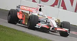 Sutil continued with the team in 2008 under its new identity as Force India,[9] after briefly entertaining the possibility of a drive with McLaren or Williams.[10] The first two races of the season ended with mechanical failures[11]