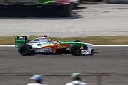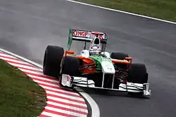 Despite qualifying in the top ten in Hungary, Sutil could only finish 14th, before another points-scoring finish – finishing seventh, after starting 15th on the grid after an accident in qualifying – at the Belgian Grand Prix. He retired at Monza after his car suffered a hydraulics problem, before an eighth-place finish in Singapore, holding off a late-race challenge from Felipe Massa. In Japan, Sutil ran inside the top ten placings for much of the race, but finished the race just outside the points in eleventh place, having been passed by Vitaly Petrov and Nico Rosberg in the closing stages of the race. Another eleventh place followed in Korea, before a ninth-place finish in the inaugural race in India.[23] At the final race in Brazil, Sutil matched his best finish of the season with sixth place, and as a result, moved into ninth place in the final championship standings.[24] As a result of his assault convictions (see above), Sutil was released at the end of the 2011 season and replaced with Nico Hülkenberg.[25]