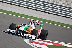 Sutil was in talks with Force India to renew his contract, and on 27 November 2009, the team announced that the German's contract had been renewed, while test-driver Vitantonio Liuzzi was given a full-time race seat.[21] Sutil qualified tenth for the first two races of the year, but a collision with Robert Kubica in Bahrain and a mechanical failure in Australia meant he was unable to score points in either race. However, Sutil commented that the performances proved that the team could now score points in dry races.[22] This comment was backed up by Sutil's fifth-place finish in the following race in Malaysia. In China he finished 11th. In Spain he finished 7th and in Monaco he finished 8th. Sutil again finished in the points in Turkey with a ninth place. He followed this result with points scoring finishes in the next three rounds in Canada, Europe and Britain.