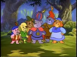 Adventures of the Gummi Bears is an American animated high fantasy television series created by Jymn Magon and produced by Walt Disney Television Animation.[1] The series, loosely inspired by gummy bear candies,[2] takes place in a fantasy world of medieval lands and magic, and focuses on the lives of six mystical beings known as Gummi Bears. The series focuses on the exploits of the main characters, as they tackle a series of problems, as well as aid their human friends and thwart the plans of various evil characters. Episodes consisted of either a single story, or two 11-minute stories.