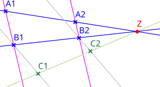 4. ratios of lengths of parallel line segments: for distinct parallel segments defined by points and , respectively, the ratio of to is the same as that of to .