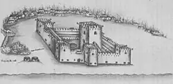 Afonso began building the Fort of Our Lady of Victory (later renamed Fort of Our Lady of the Conception)[28] on Hormuz Island, engaging his men of all ranks in the work.[29] However, some of his officers, claiming that Afonso was exceeding his orders, revolted against the heavy work and climate and departed for India. With his fleet reduced to two ships and left without supplies, he was unable to maintain his position. In January 1508, he was forced to abandon Ormuz. He raided coastal villages to resupply the settlement of Socotra, returned to Ormuz, and then headed to India.[30]