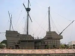 Albuquerque went as "chief-captain for the Coast of Arabia", sailing under da Cunha's orders until reaching Mozambique.[22] He carried a sealed letter with a secret mission ordered by the king: after fulfilling the first mission, he was to replace the first viceroy of India, Francisco de Almeida, whose term ended two years later.[6] Before departing, he legitimized his son Brás ("Braz" in the old Portuguese spelling), born to a common Portuguese woman named Joana Vicente in 1500.[23]