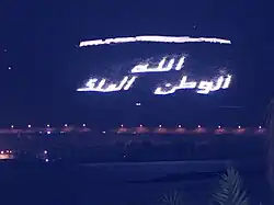 The hill bears the inscription in Arabic: "God, Country, King" which, like the walls, is illuminated at night.