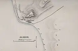 In 1731, the town was completely destroyed by an earthquake.[21] After that, Agadir's harbour was ordered to be closed, and an alternative, Essaouira, was established farther north.