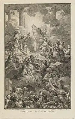 In the mid-18th century, Paris became the center of philosophic and scientific activity challenging traditional doctrines and dogmas. After the Edict of Fontainebleau in 1685, the relationship between church and the absolutist government was very strong. The early enlightenment emerged in protest to these circumstances, gaining ground under the support of Madame de Pompadour, the mistress of Louis XV.[32] Called the Siècle des Lumières, the philosophical movement of the Enlightenment had already started by the early 18th century, when Pierre Bayle launched the popular and scholarly Enlightenment critique of religion. As a skeptic Bayle only partially accepted the philosophy and principles of rationality. He did draw a strict boundary between morality and religion. The rigor of his Dictionnaire Historique et Critique influenced many of the Enlightenment Encyclopédistes.[33] By the mid-18th century the French Enlightenment had found a focus in the project of the Encyclopédie.[32] The philosophical movement was led by Voltaire and Rousseau, who argued for a society based upon reason rather than faith and Catholic doctrine, for a new civil order based on natural law, and for science based on experiments and observation. The political philosopher Montesquieu introduced the idea of a separation of powers in a government, a concept which was enthusiastically adopted by the authors of the United States Constitution. While the philosophes of the French Enlightenment were not revolutionaries and many were members of the nobility, their ideas played an important part in undermining the legitimacy of the Old Regime and shaping the French Revolution.[34]