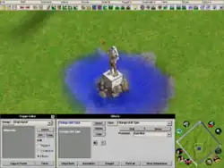 The Age of Mythology editor is far more advanced than that of its predecessor, the Age of Empires II scenario editor.[17] In addition to standard unit placement facilities, the editor allows units to be overlapped, and it facilitates for large mountains, and steep terrain.[18] Triggers, a popular aspect of scenario design in Age of Empires II, are also present in Age of Mythology's editor, as well as cinematics and other special effects.[19]