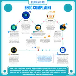 Infographic showing the process of filing an Equal Employment Opportunity Commission complaint, with age discrimination being possible grounds for EEOC intervention