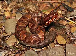 52. ^ Weidler JM (2018). "An Experimental Manipulation of Diet and its Influence on Growth and Epidermal Lipids in the Northern Cottonmouth (Agkistrodon piscivorus)". ProQuest Dissertations Publishing.