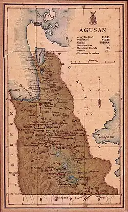 In 1907, Agusan province was created as a separate province by the Philippine Commission with two sub-provinces — Butuan and Bukidnon.[3][4]