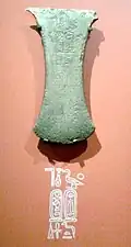 - ^ Pierre Montet, discoverer of the treasure relates that: "Others [objects] were later added to them, things which came from the pharaoh Ahmose, like the axe decorated with a griffin and a likeness of the king slaying a Hyksos, with other axes and daggers".[56]