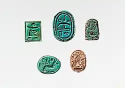 {{cite book}}: ISBN / Date incompatibility (help) - Gordon, Andrew H. (1982). "A Glass Bead of Ahmose and Amenhotep I". Journal of Near Eastern Studies. 41 (4): 295–298. doi:10.1086/372969. ISSN 0022-2968. S2CID 162089130.