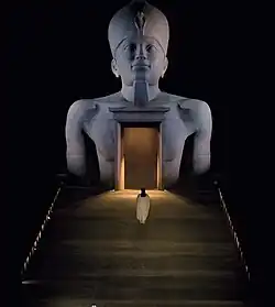 Scene 2: The lower portion of the stage shows the vault in the Temple of Ptah; the upper portion represents the temple itself