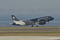 - During 2011 and 2012, two aircraft – an Airbus A320 and a Boeing 777-300ER – were painted in an All Blacks-inspired livery. The aircraft were completely black, with a silver fern motif covering the aft section of the fuselage.[73][74] Some Air New Zealand Link aircraft were also decorated in the scheme: an ATR 72–600 operated by Mount Cook Airline;[75] and two Beechcraft 1900Ds operated by now-defunct subsidiary Eagle Airways.[76]