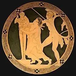 The abduction of Cassandra by Ajax was frequently represented in Greek works of art, such as the chest of Cypselus described by Pausanias and in extant works.[25][10]