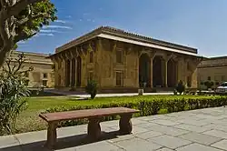 In 1556, Ajmer came under the Mughal Empire after being conquered by Mughal Emperor Akbar.[17] It was made the capital of the eponymous Ajmer Subah. The city enjoyed special favour under the Mughals, who made frequent pilgrimages to the city to visit the dargah of Moinuddin Chishti. The city was also used as a military base for campaigns against Rajput rulers and, on a number of occasions, became the site of celebration when a campaign bore success. Mughal Emperors and their nobles made generous donations to the city, and endowed it with constructions such as Akbar's palace and pavilions along the Ana Sagar.[19][20][21] Their most prominent building activities were in the dargah and its vicinity.[22] Jahanara Begum and Dara Shikoh, children of Shah Jahan, were both born in the city in 1614 and 1615, respectively.[23][24]