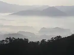 In 1575, He participated in the Siege of Takaya Castle (高屋城の戦い) against Miyoshi Yasunaga-Ikko Ikki coalition, and then in the Battle of Nagashino against the Takeda clan.[24] After that, Nobunaga sent Akechi Mitsuhide to take control of Tanba Province. Mitsuhide attempted diplomacy and won over a number of the smaller local lords to his side. However, the Akai clan were adamant in their opposition, and Mitsuhide was forced to lay siege to Kuroi Castle for two months in the winter of 1575. According to the "Yoshikawa clan's record", even though many of local lords in Tanba has joined the anti-Nobunaga force, the majority of them keep their loyalty to Nobunaga and supporting Mitsuhide. in this campaign.[25] Later, he was awarded the Court titles of "Junior Fifth Rank (Lower)" and "Governor of Hyūga", and the honorary title of "Koretō Hyūga-no-kami".[26] In June, Nobunaga ordered him to pacify Tanba Province and Tango Province.[27][26] During this campaign in Tanba Province, Mitsuhide cooperated with local lords such as Obata Nagaaki from Funai County. In addition, Kawakatsu Tsuguhisa from Imamiya, Kuwata County, had also switched sides to the Oda side after being persuaded by Obata.[28][29][30] On July, Mitsuhide began attacking pro-Yoshiaki local lords of Tanba such as Utsuno Yorishige with the help of Obata and Kawakatsu. However, at the same time he was also ordered by Nobunaga to send reinforcements to Echizen and Tango, and left the area. On August, Utsuno Yorishige attacked the Oda clan's Umaji Castle and Amarube Castle. The reason behind this order was said to be a checkmate against Akai Naomasa of Hikami County, who was pursuing attacks on Izushi Castle and Takeda Castle in Tajima, which were the territory of the Yamana clan, while showing an ambiguous attitude toward Nobunaga's attack on Tanba.[31] Later, Mitsuhide returned to Sakamoto Castle, and on October began a new attack on Tanba. Utsu Yorishige fled without fighting, and Mitsuhide then besieged Kuroi Castle, where Akai Naomasa had returned after giving up on the attack on Takeda Castle.[32] Later, Mitsuhide built fortifications on at least three separate places in his effort to besiege and capture Kuroi Castle.[33]