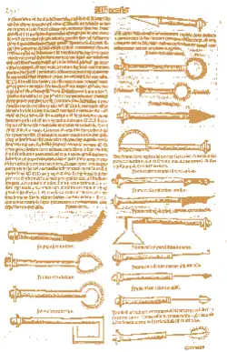 Al-Zahrawi's principal work is the Kitab al-Tasrif, a thirty-volume encyclopedia of medical practices.[4] The surgery chapter of this work was later translated into Latin, attaining popularity and becoming the standard textbook in Europe for the next five hundred years.[5] Al-Zahrawi's pioneering contributions to the field of surgical procedures and instruments had an enormous impact in the East and West well into the modern period, where some of his discoveries are still applied in medicine to this day.[6] He pioneered the use of catgut for internal stitches, and his surgical instruments are still used today to treat people.