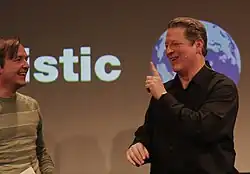 After his vice presidency ended in 2001, Gore remained prominent as an author and environmental activist, and his work in climate change activism earned him (jointly with the IPCC) the Nobel Peace Prize in 2007. Gore is the founder and chair of The Climate Reality Project, the co-founder and chair of Generation Investment Management, the since-defunct Current TV network, a former member of the Board of Directors of Apple Inc. and a senior adviser to Google.[2] Gore is also a partner in the venture capital firm Kleiner Perkins, heading its climate change solutions group.[3][4] He has served as a visiting professor at Middle Tennessee State University, Columbia University Graduate School of Journalism, Fisk University, and the University of California, Los Angeles.[2][5][6][7] He served on the Board of Directors of World Resources Institute.[8]