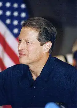 Albert Arnold Gore Jr. (born March 31, 1948) is an American politician, businessman, and environmentalist who served as the 45th vice president of the United States from 1993 to 2001 under President Bill Clinton. A member of the Democratic Party, he previously represented Tennessee in both houses of the U.S. Congress, first as a member of the U.S. House of Representatives from 1977 to 1985, and then as a U.S. senator from 1985 to 1993. Gore was the Democratic nominee for president of the United States in 2000; he lost to George W. Bush despite winning the popular vote.[a]