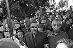 On August 28, 2017, the fifty-fourth anniversary of the March on Washington at which Martin Luther King Jr. gave his "I Have a Dream" speech, Sharpton organized the Ministers March for Justice, promising to bring a thousand members of the clergy to Washington, D.C., to deliver a "unified moral rebuke" to President Donald Trump.[83] Several thousand religious leaders were present, including Christians, Jews, Muslims, and Sikhs.[84] Washington Post columnist Dana Milbank wrote that "President Trump has united us, after all. He brought together the Rev. Al Sharpton and the Jews."[85]