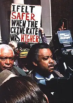 Bernhard Goetz shot four African-American men on a New York City Subway 2 train in Manhattan on December 22, 1984, when they approached him and tried to rob him. At his trial Goetz was acquitted of all charges except for carrying an unlicensed firearm. Sharpton led several marches protesting what he saw as the weak prosecution of the case.[28][29][30] Sharpton and other civil rights leaders said Goetz's actions were racist and requested a federal civil rights investigation.[29] A federal investigation concluded the shooting was due to an attempted robbery and not race.[30]