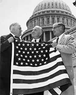Statehood for Alaska was an important cause of James Wickersham early in his tenure as a congressional delegate.[26] Decades later, the statehood movement gained its first real momentum following a territorial referendum in 1946. The Alaska Statehood Committee and Alaska's Constitutional Convention soon followed. Statehood supporters also found themselves fighting major battles against political foes, mostly in the U.S. Congress but also within Alaska. Statehood was approved by the U.S. Congress on July 7, 1958. Alaska was officially proclaimed a state on January 3, 1959.[27]