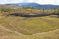 The Indo-Europeanisation of Albania in the context of the IE-isation of the western Balkans began after 2800 BC. The presence of the Early Bronze Age tumuli in the vicinity of later Apollonia dates to 2679±174 calBC (2852–2505 calBC). These burial mounds belong to the southern expression of the Adriatic-Ljubljana culture (related to later Cetina culture) which moved southwards along the Adriatic from the northern Balkans. The same community built similar mounds in Montenegro (Rakića Kuće) and northern Albania (Shtoj).[24] The first archaeogenetic find related to the IE-isation of Albania involves a man with predominantly Yamnaya ancestry buried in a tumulus of northeastern Albania which dates to 2663–2472 calBC.[25] During the Middle Bronze Age, Cetina culture sites and finds appear in Albania. Cetina culture moved southwards across the Adriatic from the Cetina valley of Dalmatia. In Albania, Cetina finds are concentrated around southern Lake Shkodër and appear typically in tumulus cemeteries like in Shkrel and Shtoj and hillforts like Gajtan (Shkodër) as well as cave sites like Blaz, Nezir and Keputa (central Albania) and lake basin sites like Sovjan (southeastern Albania).[26]
