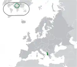 ![]() Location of Albania (green) in Europe (dark grey) | |