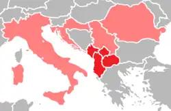 The dialects of the Albanian language in Southern Europe.[8][note 1]