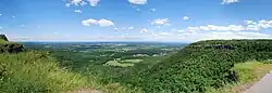 The terrain of the county ranges from flat near the Hudson and Mohawk Rivers to high and hilly to the southwest, of the Helderberg Escarpment and the Helderberg Mountains. The highest point is one of several summits near Henry Hill at approximately 2,160 feet (660 m) above sea level; The lowest point is 62 feet (19 m) above sea level at the Hudson River's southernmost extent in the county.