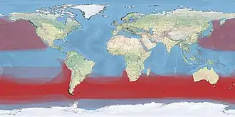 Distribution and range at sea