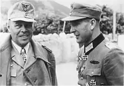 Kesselring was briefly considered as a possible successor to Generalfeldmarschall Wilhelm Keitel as Chief of Staff of the OKW in September 1942, with General der Panzertruppe Friedrich Paulus replacing Generaloberst Alfred Jodl as Chief of the Operations Staff at OKW. That Kesselring was considered for this appointment demonstrated the high regard in which Kesselring was held by Hitler. Nevertheless, Hitler decided that neither Kesselring nor Paulus could be spared from their current posts.[141] In October 1942, Kesselring was given direct command of all German armed forces in the theatre except Rommel's German-Italian Panzer Army in North Africa, including General der Infanterie Enno von Rintelen, the German liaison officer at the Italian Comando Supremo. Kesselring's command also included the troops in Greece and the Balkans until the end of the year, when Hitler created another army group headquarters under Generalfeldmarschall Wilhelm List, naming him Wehrmacht Commander-in-Chief South East.[142]