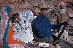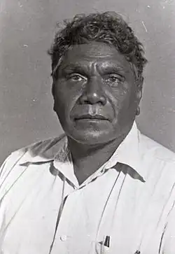 His wife, like his father's wife, was from the wrong skin group and he violated the law of his people by marrying outside the classificatory kinship system. In 1928 he was ostracised for several years in which he worked as a camel driver and saw much of Central Australia, which he was later to depict in his paintings.[7] He also worked as a blacksmith, carpenter and stockman, at the mission and at the surrounding cattle stations.[6]