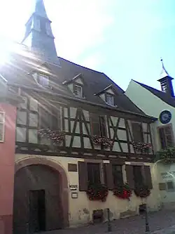 Schweitzer was born on 14 January 1875 in Kaysersberg in Alsace, in what had less than four years previously become the Imperial Territory of Alsace-Lorraine in the German Empire. He later became a citizen of France after World War I, when Alsace became French territory again. He was the son of Adèle (née Schillinger) and Louis Théophile Schweitzer.[2][3] He spent his childhood in Gunsbach, also in Alsace, where his father, the local Lutheran-Evangelical pastor of the EPCAAL, taught him how to play music.[4] The tiny village would become home to the Association Internationale Albert Schweitzer (AIAS).[5]
